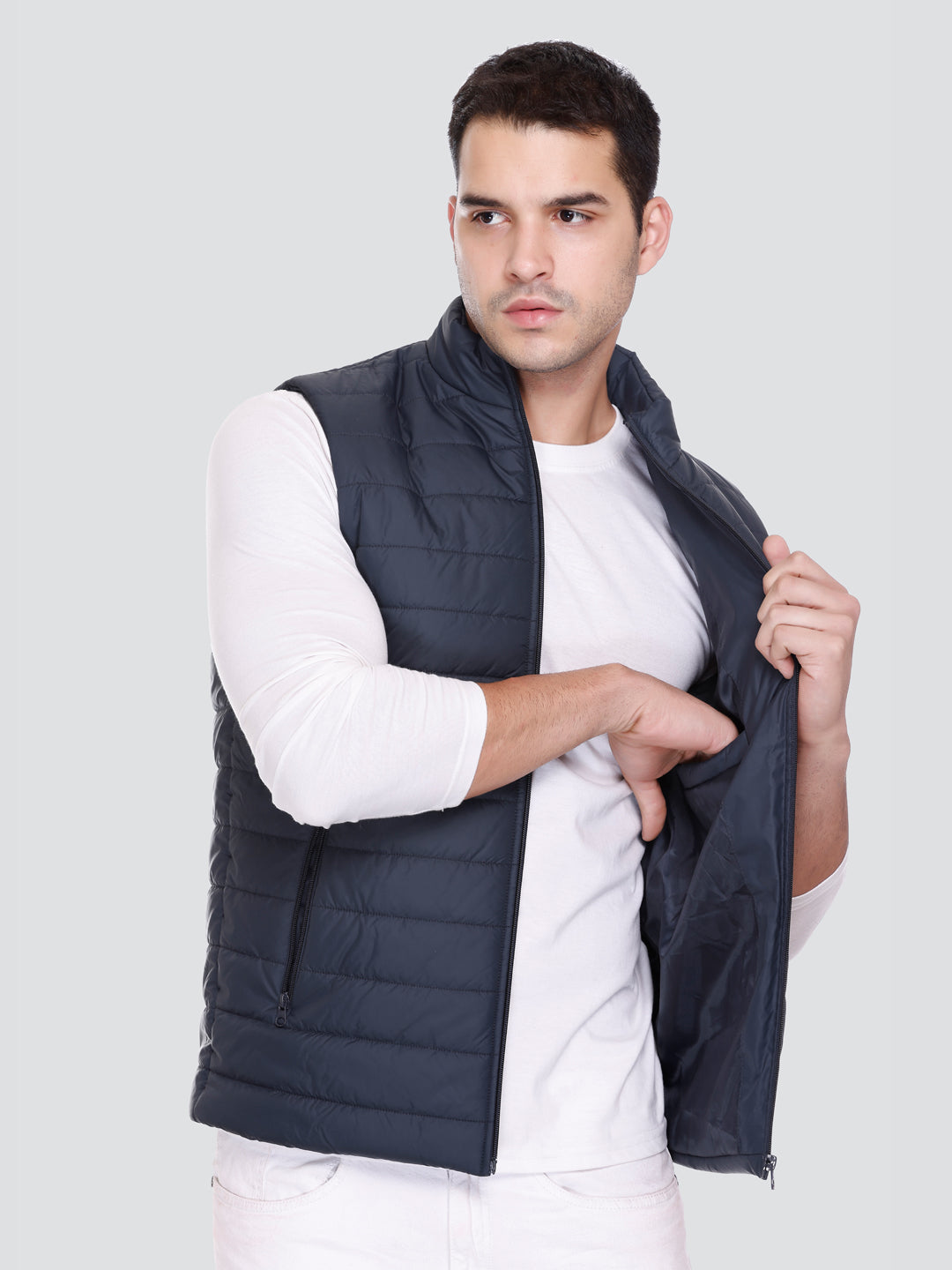 Men Winter Sleeveless Puffer Zipper Jacket Dark Navy